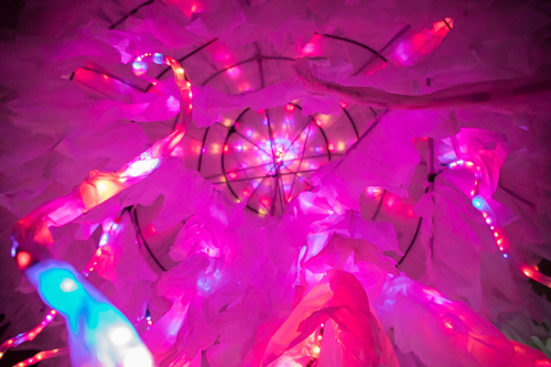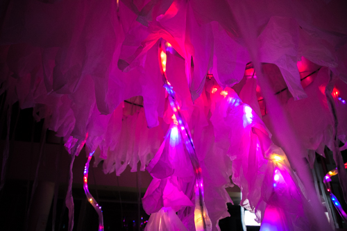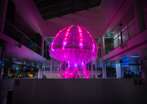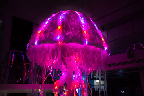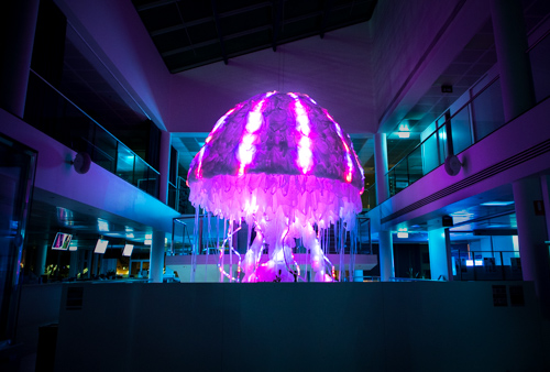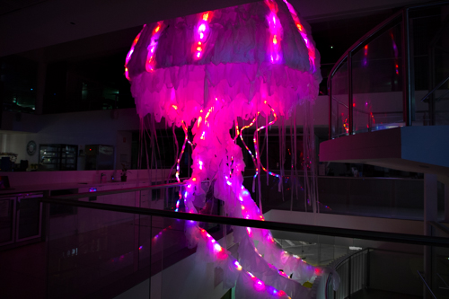 Beyond the Deep is a public interactive LED installation of a giant jellyfish with the animation LED sequences controllable by the internet and open to the public.