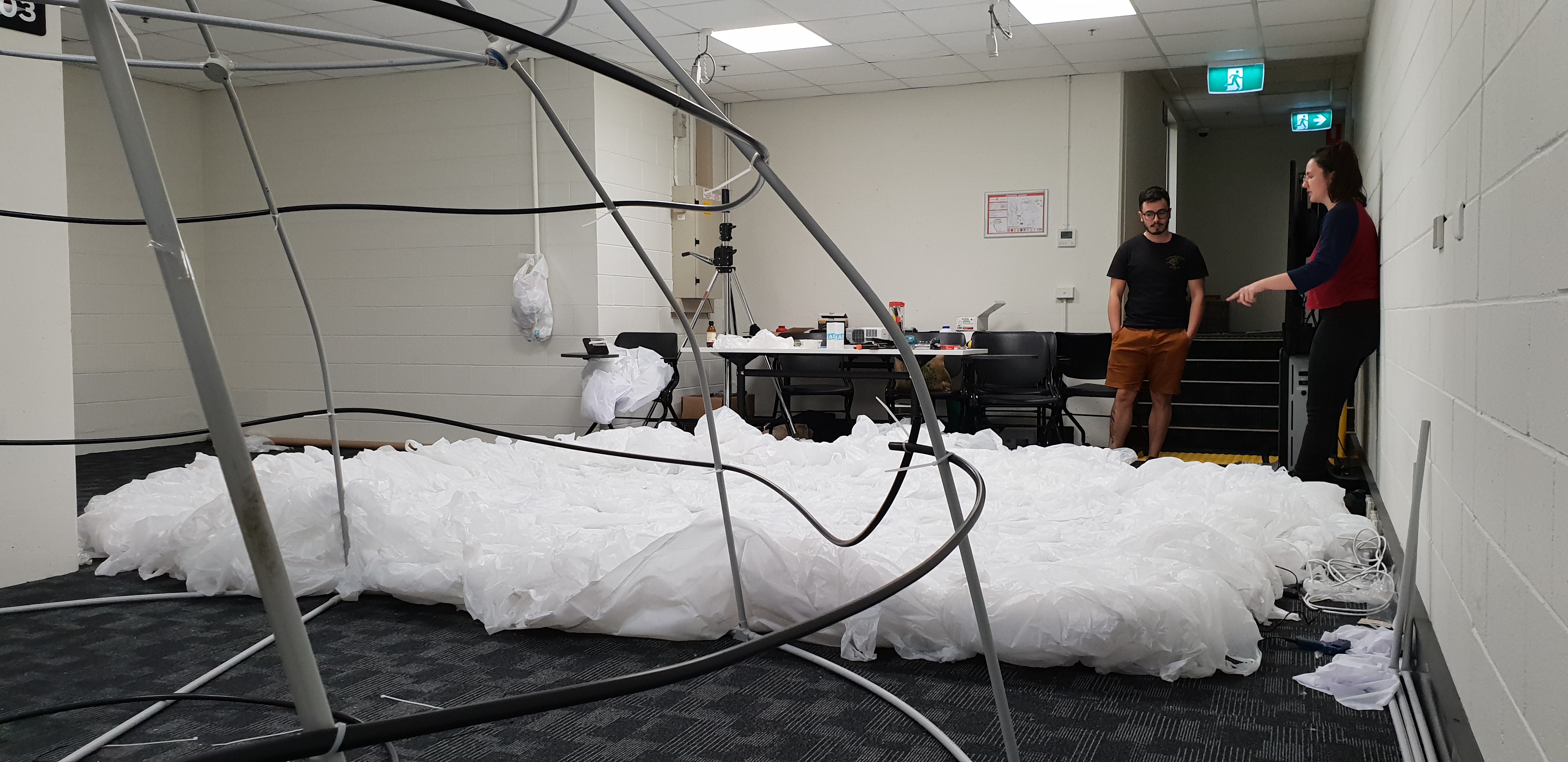 The materials used make use of stockpiles of single use plastic bags from local businesses, which are now illegal for them to use in Australia, to raise a conversation regarding sustainability.